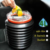 Foldable bin, can be stretched as required, portable storage. High quality plastic, thick and sturdy. Half folded, the opening of the barrel can be stretched at any angle. with sufficient materials, fold and stretch up to ten thousand times.