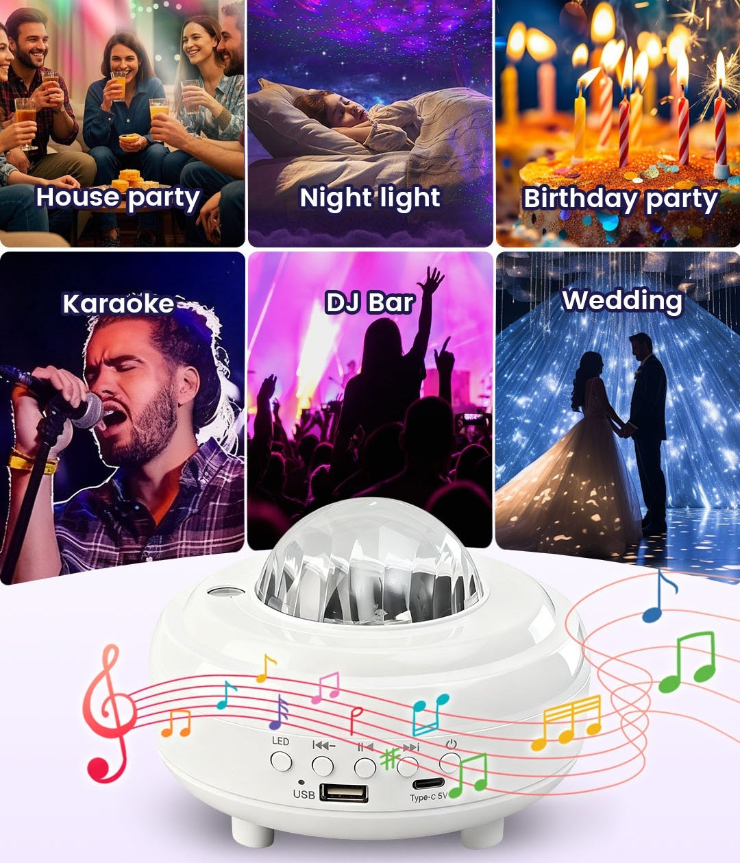 Upgraded model: Connects to mobile phones via Bluetooth with faster and more stable performance; includes aurora, starry sky, and moon effects.