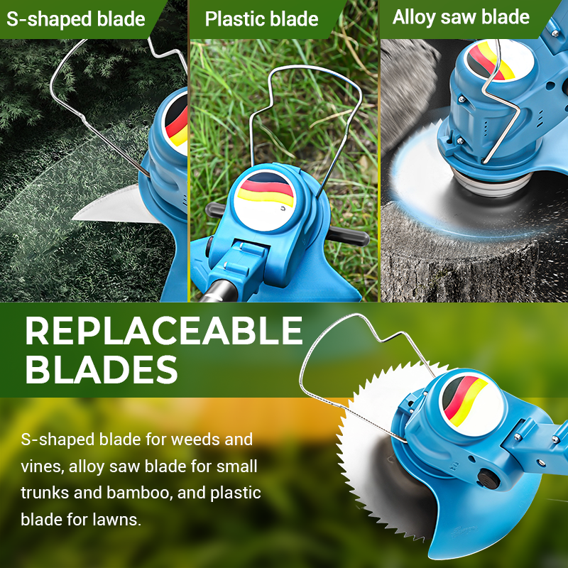 HIGH-PERFORMANCE REPLACEABLE BLADES – The S-shaped blade is perfect for cutting weeds and vines, while the alloy saw blade handles crops, small tree trunks, and bamboo. The plastic blade is designed for precise lawn trimming. It is a long-lasting tool for all your gardening needs.