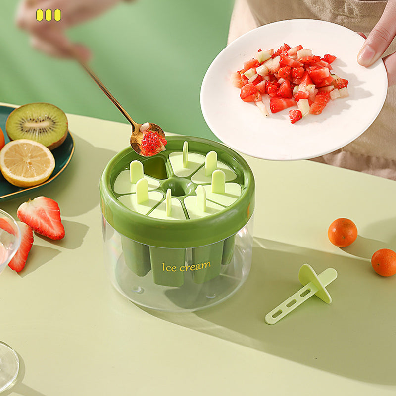 NEW DESIGN POPSICLE MOLD - The upgrade popsicle molds designed with 8 holes and 8 reusable sticks and come with round ice box to keep your popsicles cold. The mold size is perfectly suit for kids which is saving materials, convenient to clean, safe to use, and can be reused for a long time.