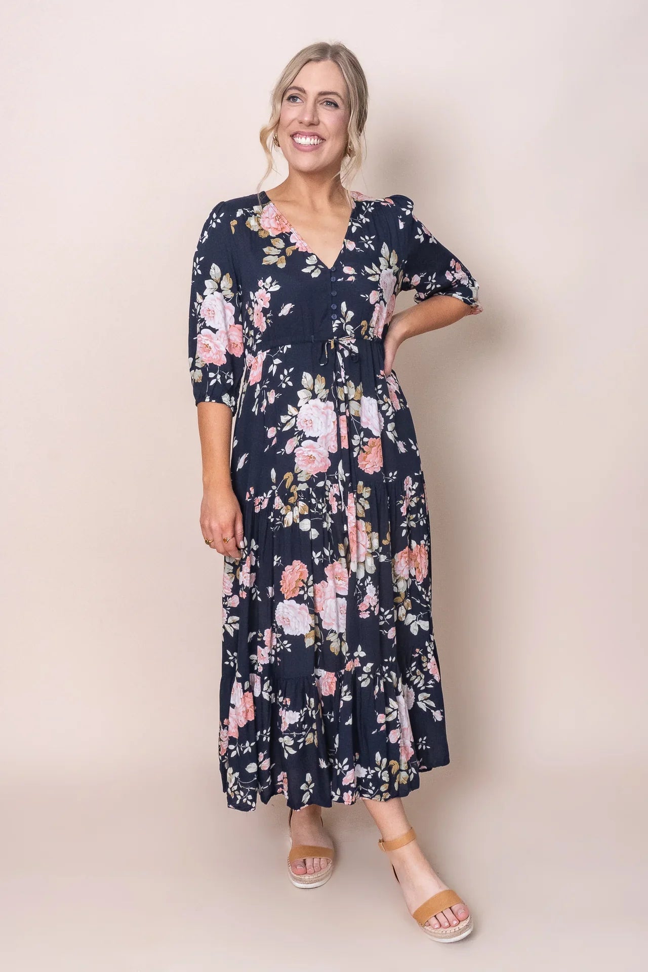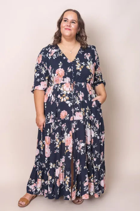Elegant floral dress for women Cristiana Dress in Navy